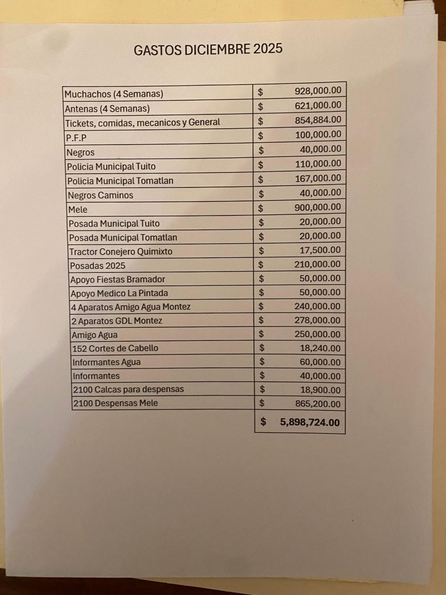 Lo que más ha causado alarma es que en el documento aparecen anotaciones como “Policía Sayula – $236,000”, “Policía Atoyac – $106,000”, “Policía Techaluta – $24,000” y “Policía Amacueca – $82,000”, además de un registro para “Policía Vial Estado – $2,000”.