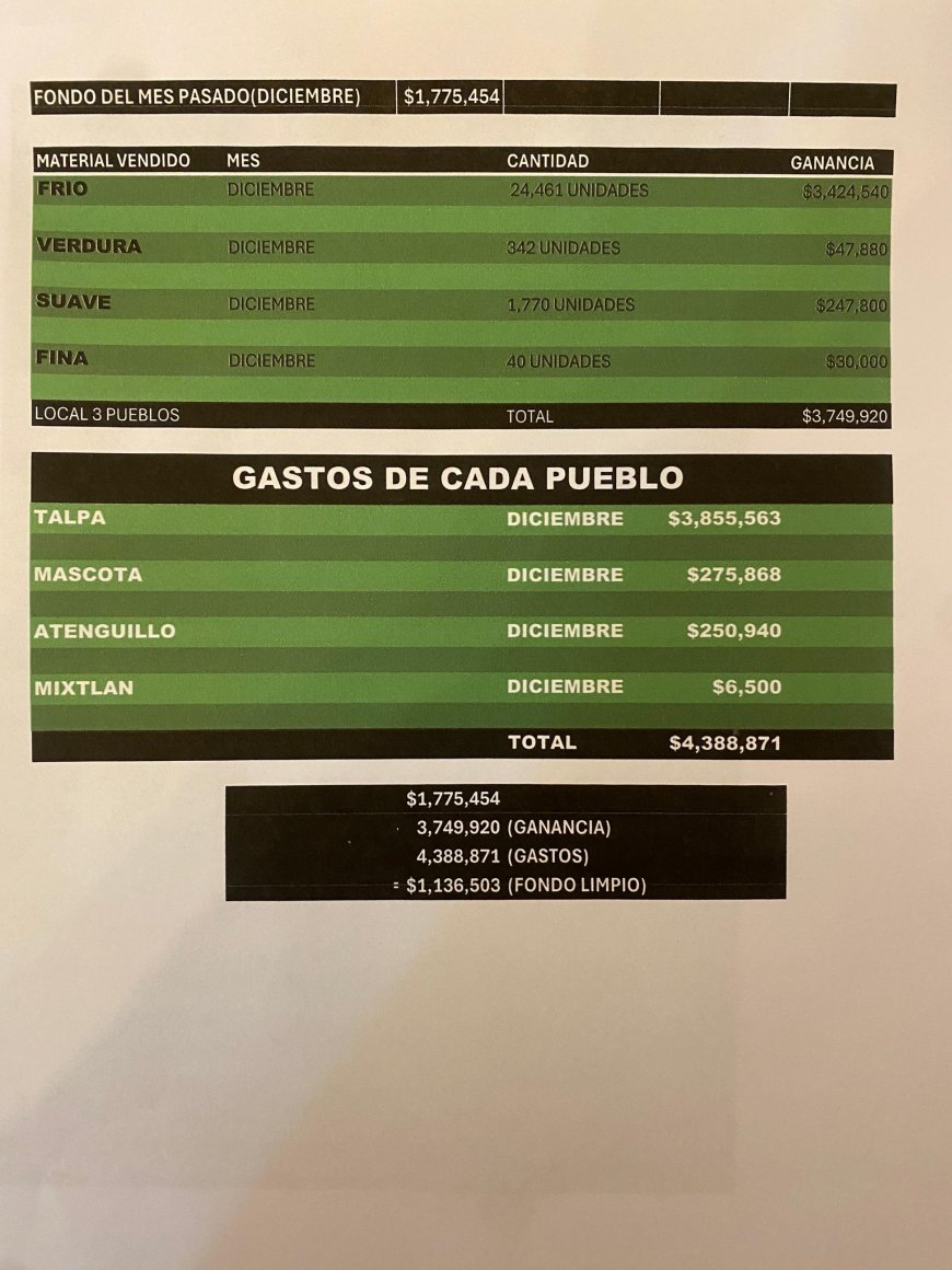 ¡Para ponerle los pelos de punta! En diciembre de 2025, el CJNG habría registrado ingresos millonarios solo en la región sur de Jalisco. Y lo más preocupante es que, según el documento, los pagos dirigidos a autoridades representarían una parte significativa de los gastos operativos.